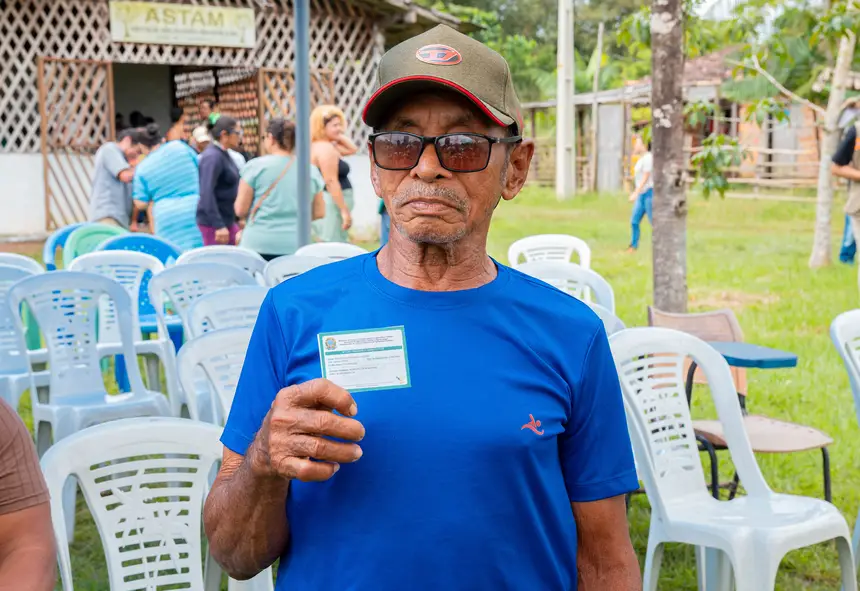 Já Roberto Chagas, 76 anos, comemorou a aquisição do documento. Agora, é a família quem trabalha na terra. “76 anos de idade e hoje tenho minha primeira carteira do CAF”, repetiu ele, mostrando o documento com orgulho.
