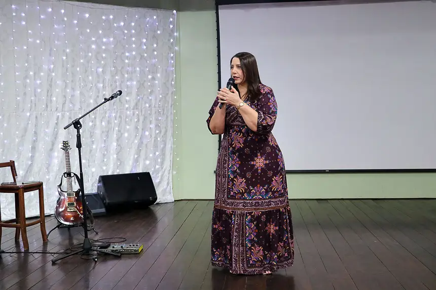 Durante a cerimônia, a homenageada Rosana Alexandrino Moraes destacou a importância do reconhecimento e da força coletiva das mulheres.