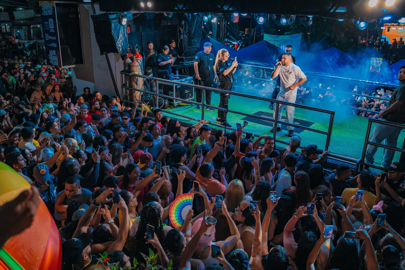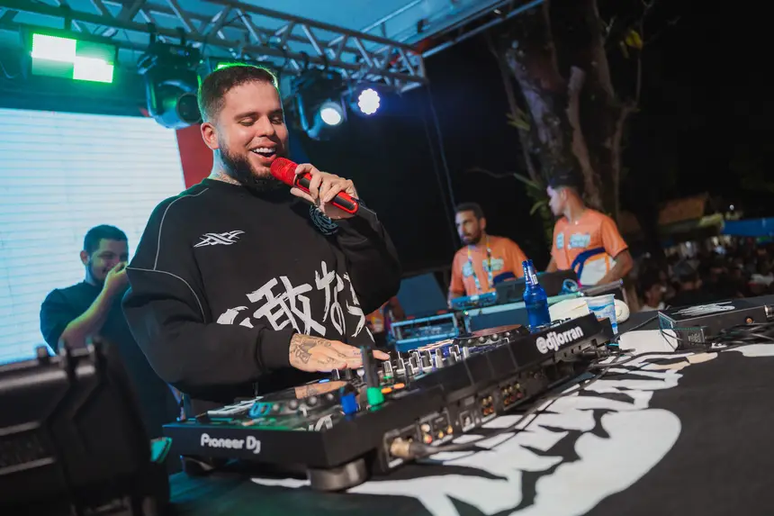 Logo após, por volta das 23h, o ritmo acelerou com os DJs do Playsom e o DJ Lorran, que incendiaram a programação com batidas eletrônicas, mantendo a energia lá no alto enquanto o trio elétrico se posicionava para o momento mais aguardado da madrugada.