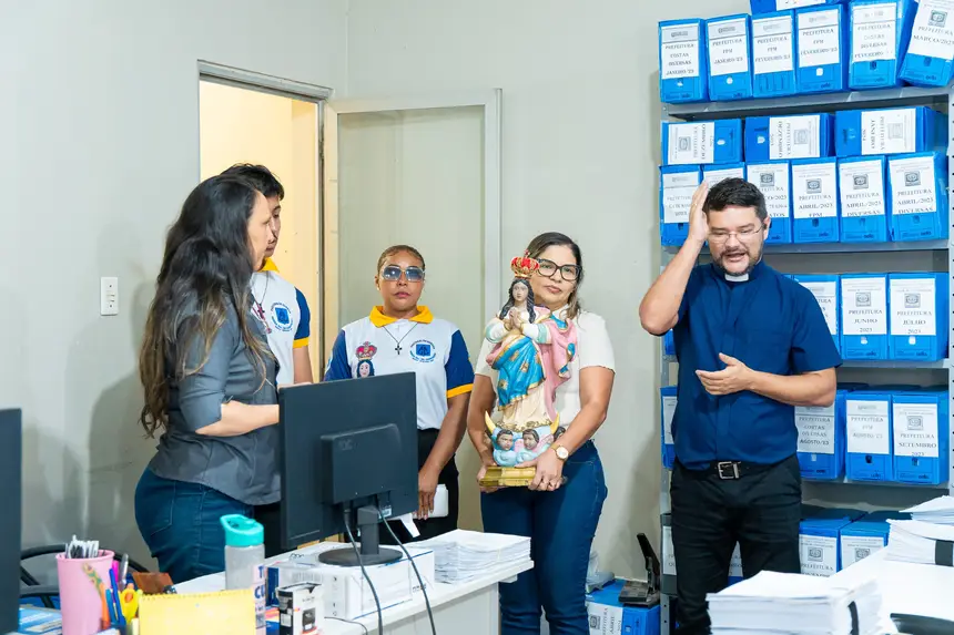 Após a missa, a imagem peregrina visitou alguns setores administrativos, levando bênçãos aos servidores públicos municipais.