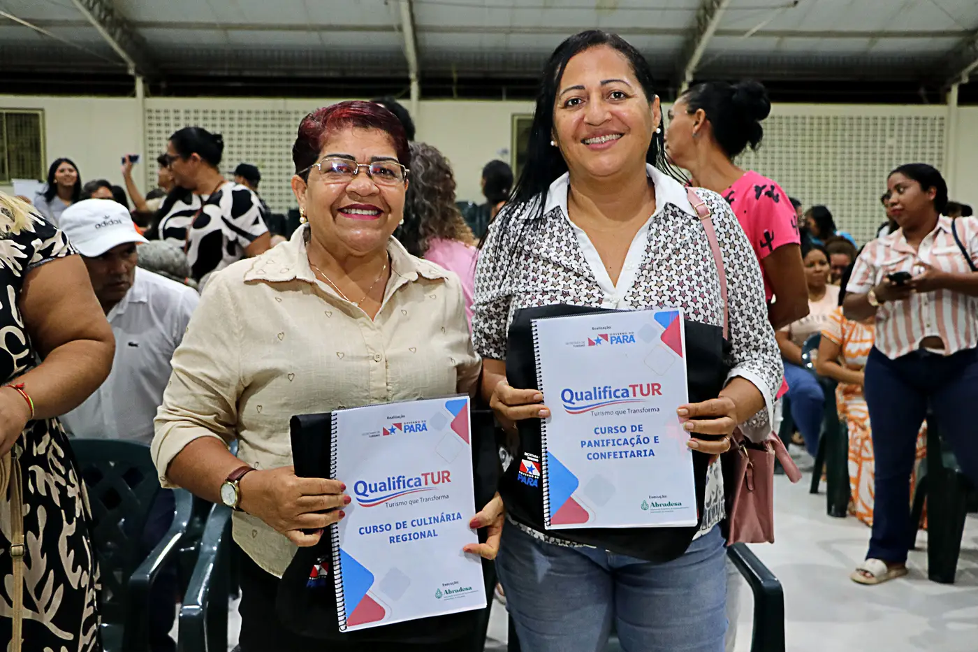 Entre as mulheres inscritas, o clima é de entusiasmo! Landia Brito, de 47 anos, também se inscreveu para participar de dois cursos profissionalizantes. “Quero me qualificar para prestar um serviço de excelência. Minha expectativa é que apareça uma oportunidade boa para eu voltar para o mercado de trabalho”, diz. Já Luciana de Oliveira, que escolheu os cursos de Panificação, Confeitaria e Petiscos Paraenses, destaca a facilidade que terá para realizar as capacitações: “Estou muito feliz, pois todos os cursos que vou fazer são pertinho da minha casa. Vou fazer tudo sem sair de Benevides!”