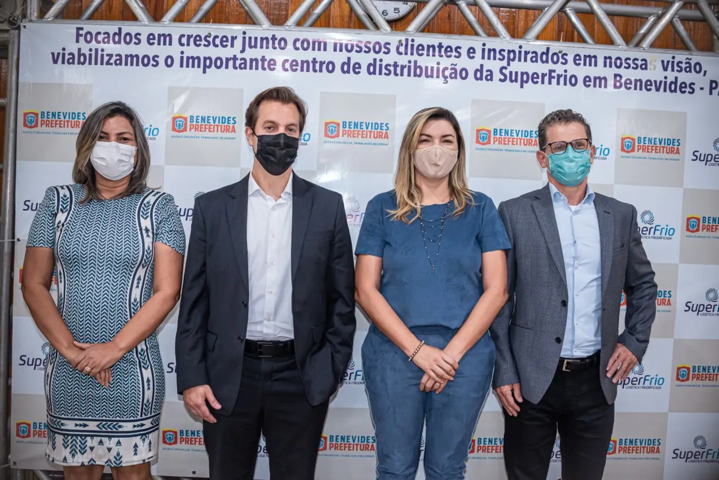 Prefeita e vice Prefeita de Benevides com os senhores Jean Falótico, diretor da SuperFrio e Rodrigo Vassimon, CEO da empresa Super Frio